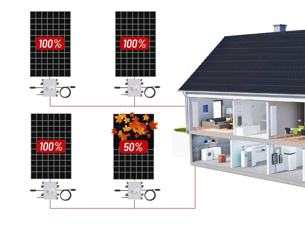 Każdy mikroinwerter jest wyposażony w niezależną funkcję śledzenia maksymalnego punktu mocy (MPPT), która śledzi i optymalizuje moc wyjściową paneli słonecznych w czasie rzeczywistym, aby zmaksymalizować wydajność wytwarzania energii.